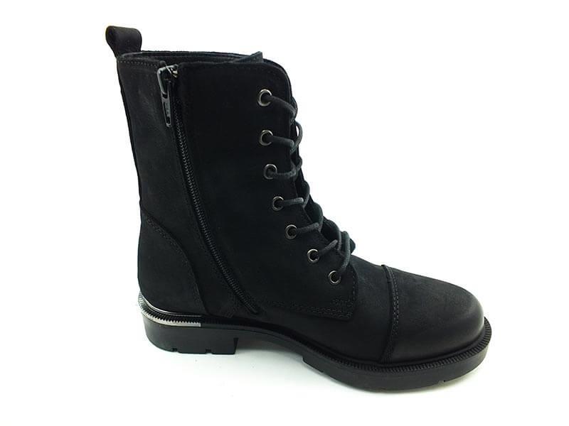 Bağcıklı-Fermuarlı Deri Bayan Bot - Siyah-Nubuk - 18802