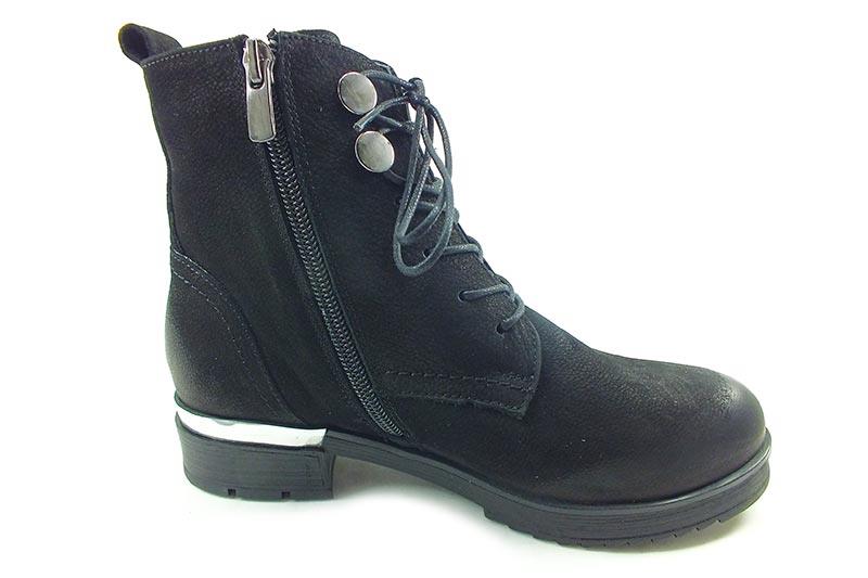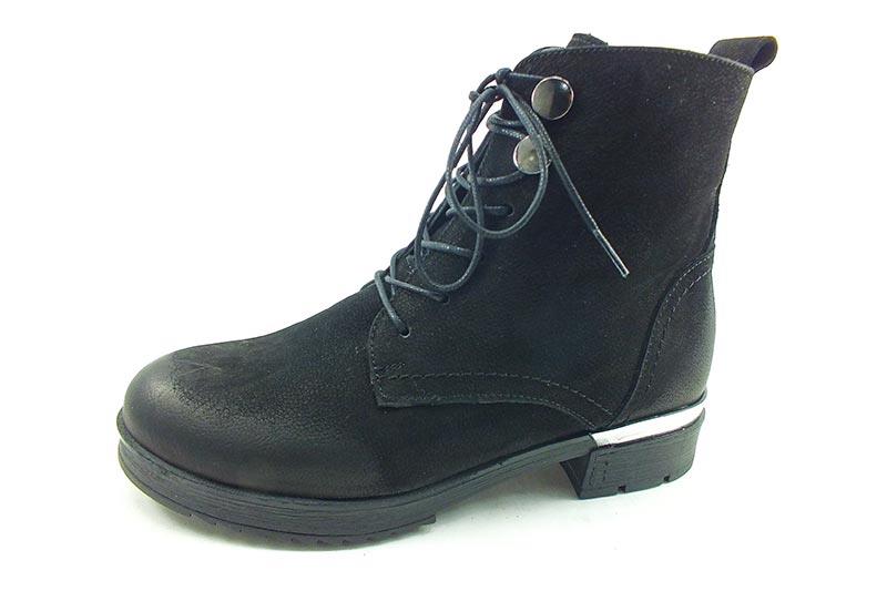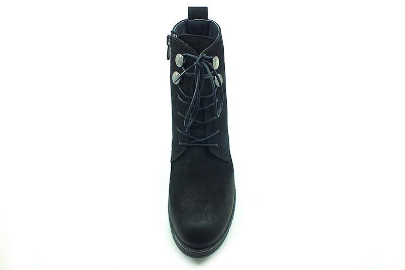 Bağcıklı-Fermuarlı Deri Bayan Bot - Siyah-Nubuk - 7405