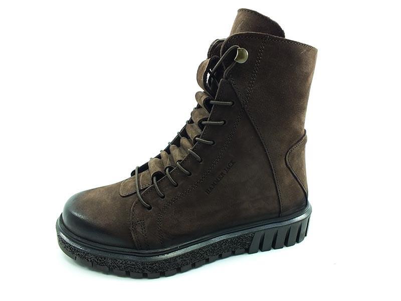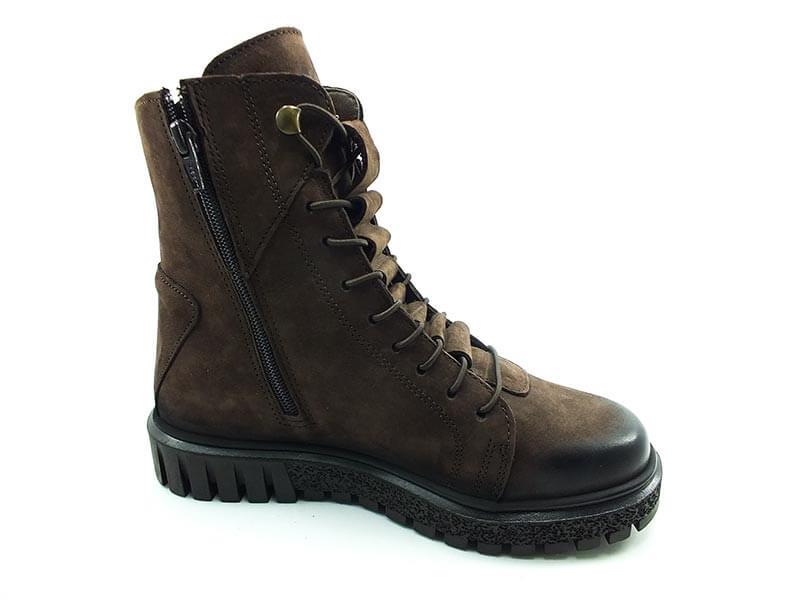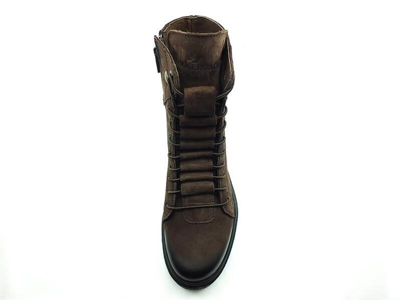 Bağcıklı-Fermuarlı Kadın Deri Bot - Kahve-Nubuk - 17945