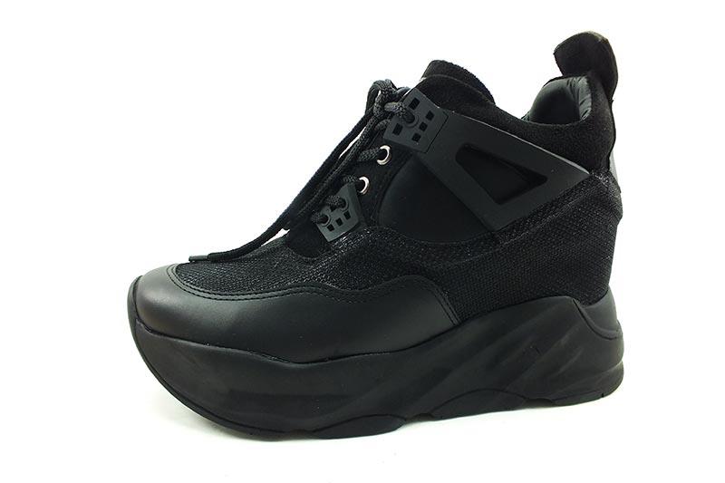 Bağcıklı Gizli Topuk Bayan Ayakkabı - Siyah - 5422