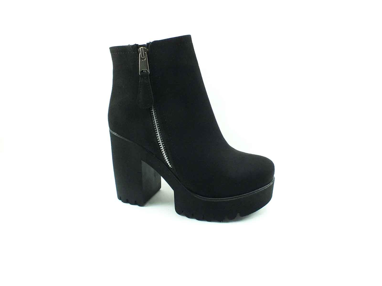 Beety Fermuarlı Kalın Topuklu Kadın Botu - Siyah-Süet - 26.1002