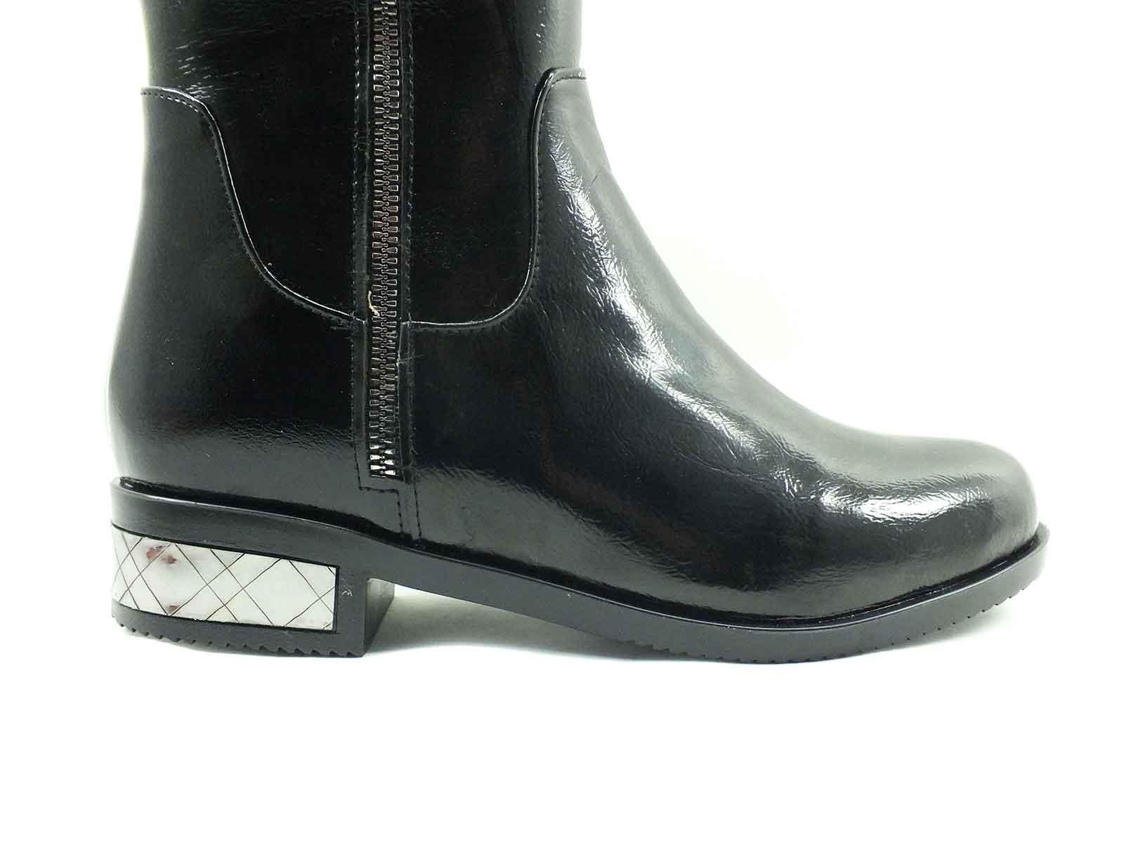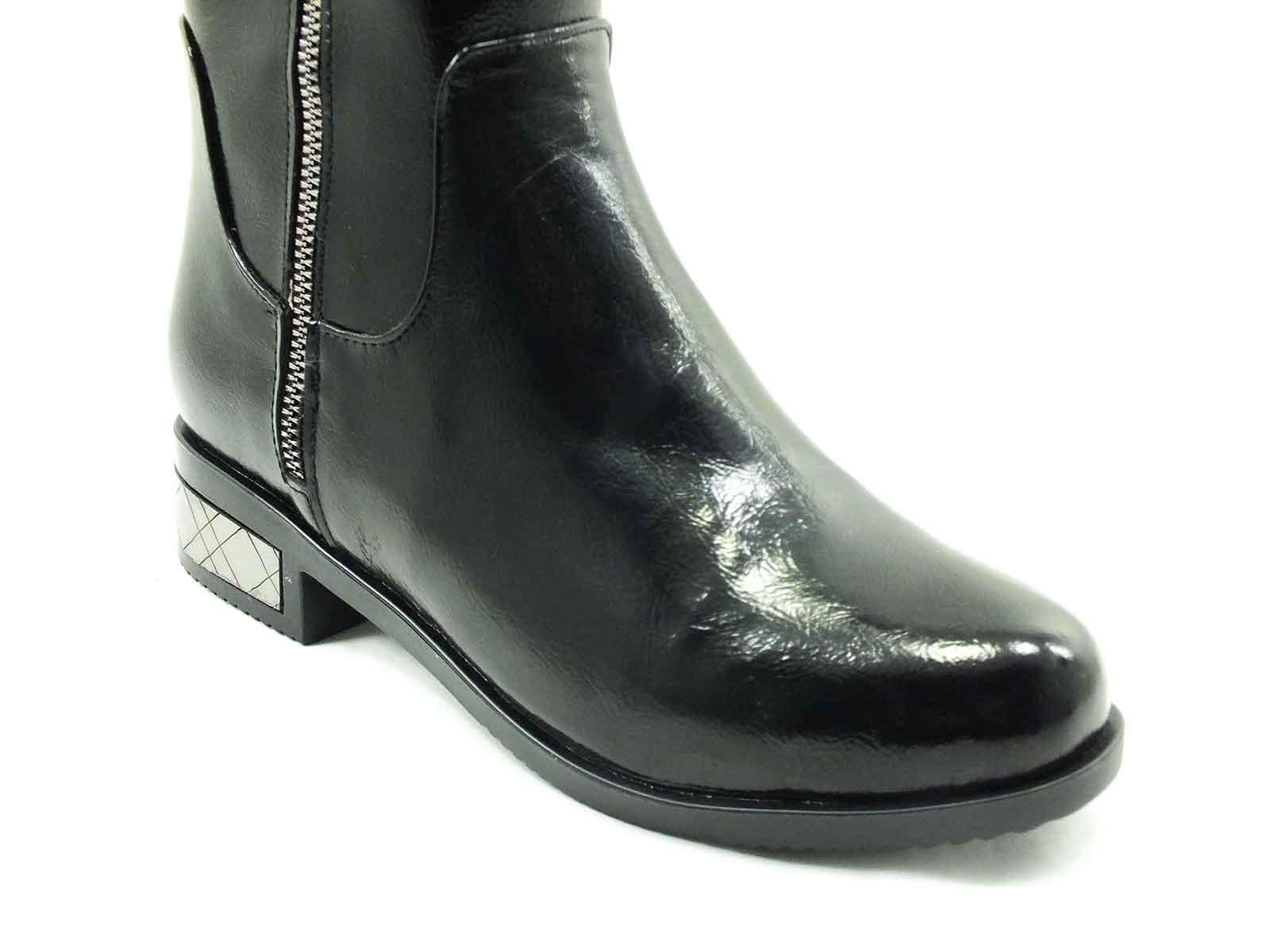 • Beety Kadın  Fermuarlı Parlak Çizme - Siyah-Rugan - 760