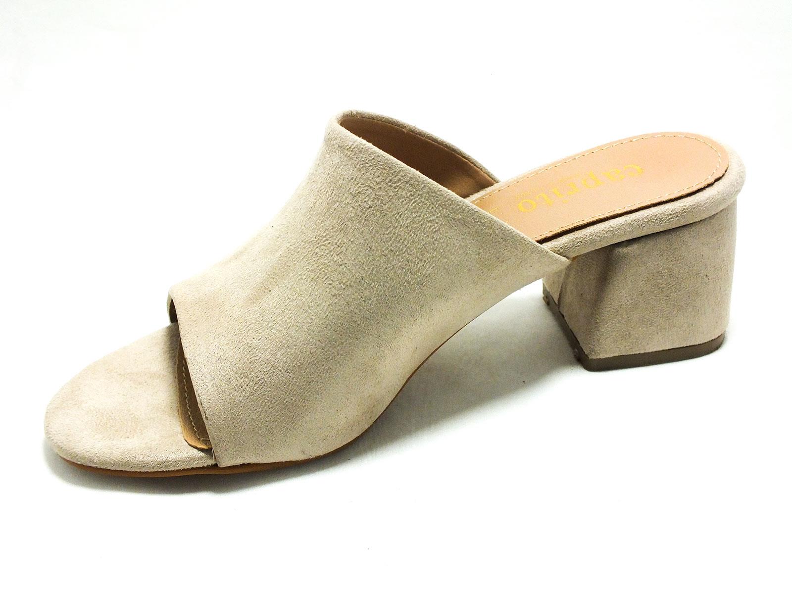 Caprito Kalın Topuklu Kadın Terliği Ten-Süet 13 19124