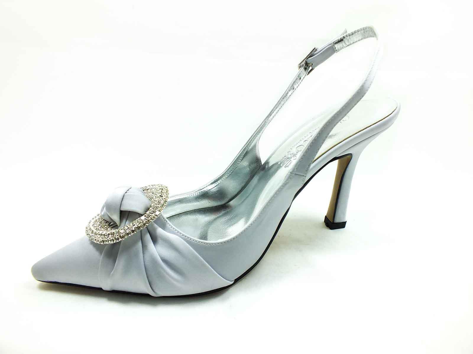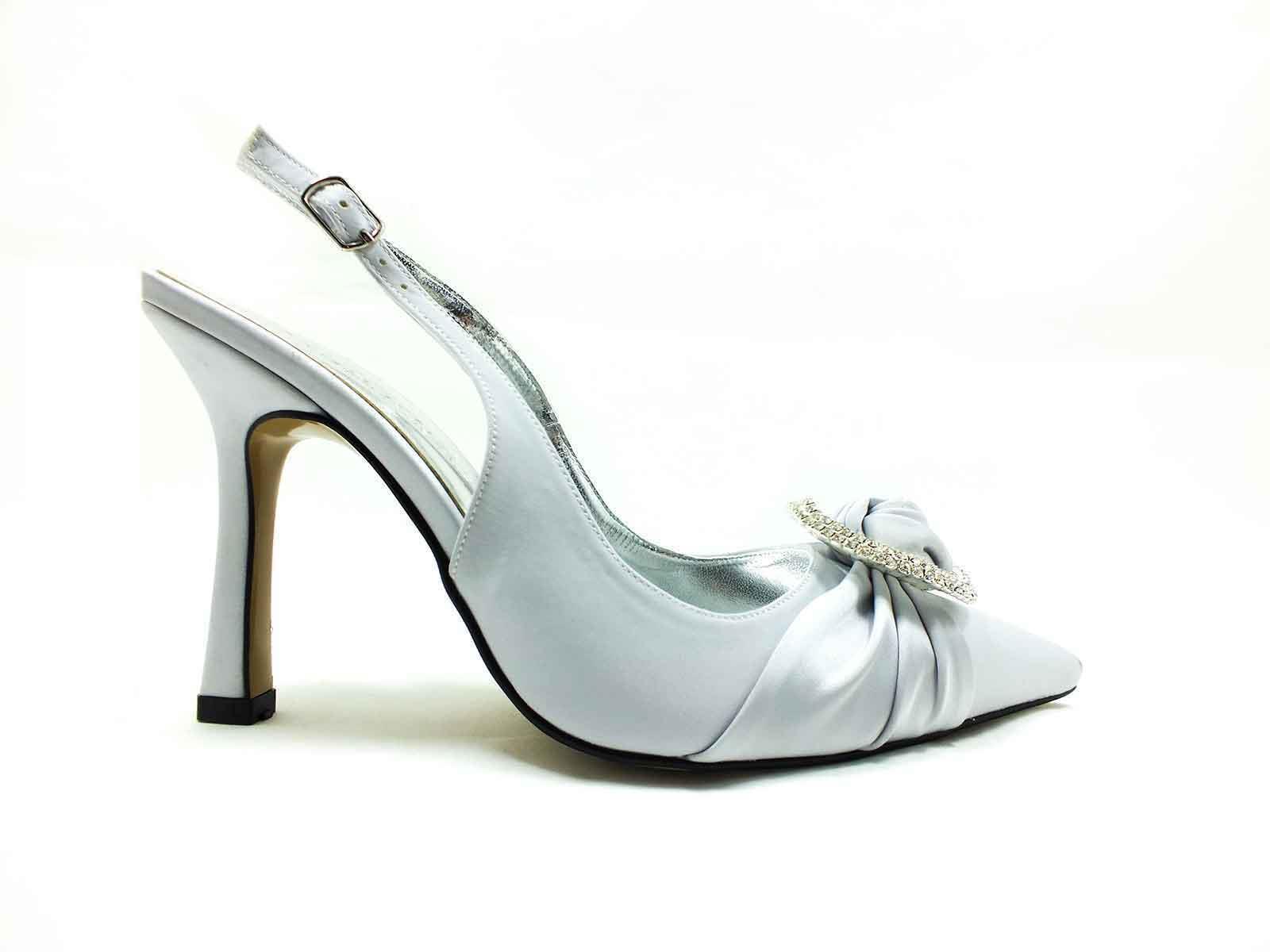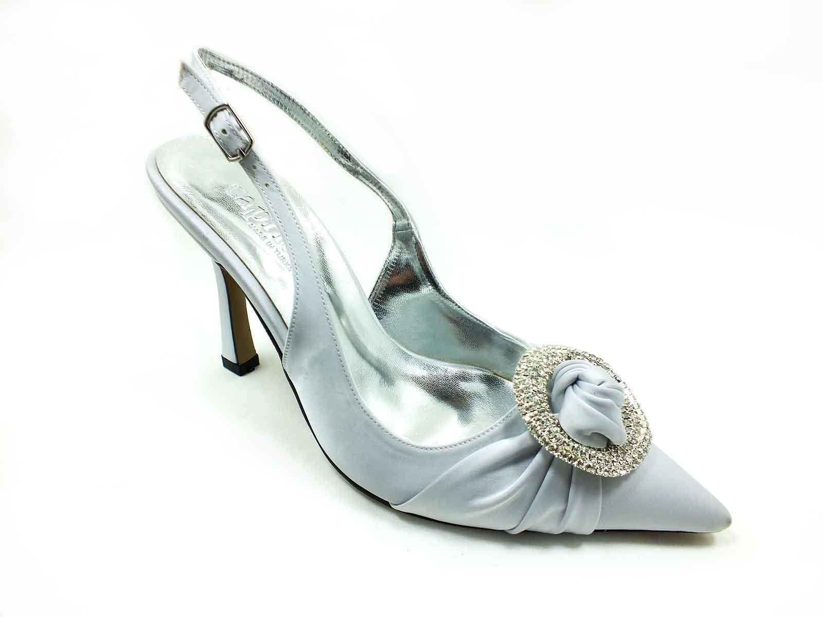 Caprito Topuklu Taşlı Ayakkabı Gümüş-Saten