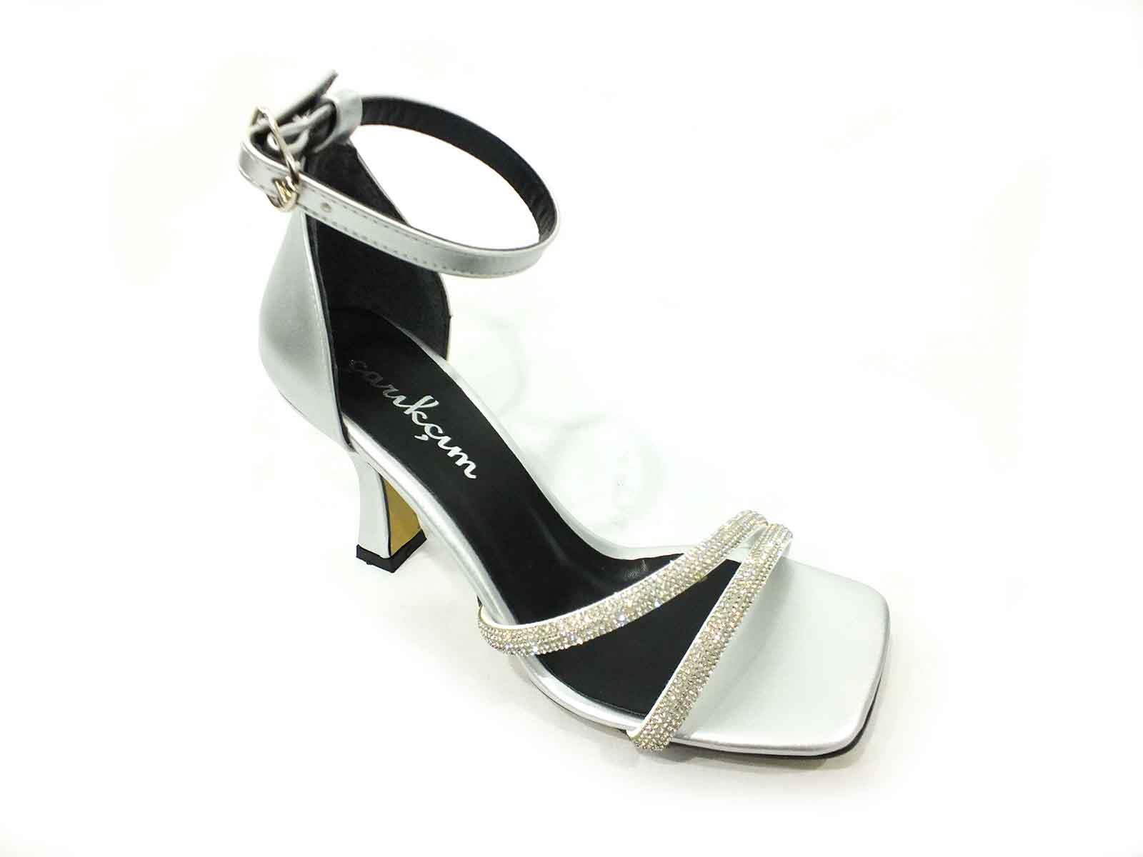 Çarıkçım Taşlı Topuklu Kadın Ayakkabı Gümüş 114 521