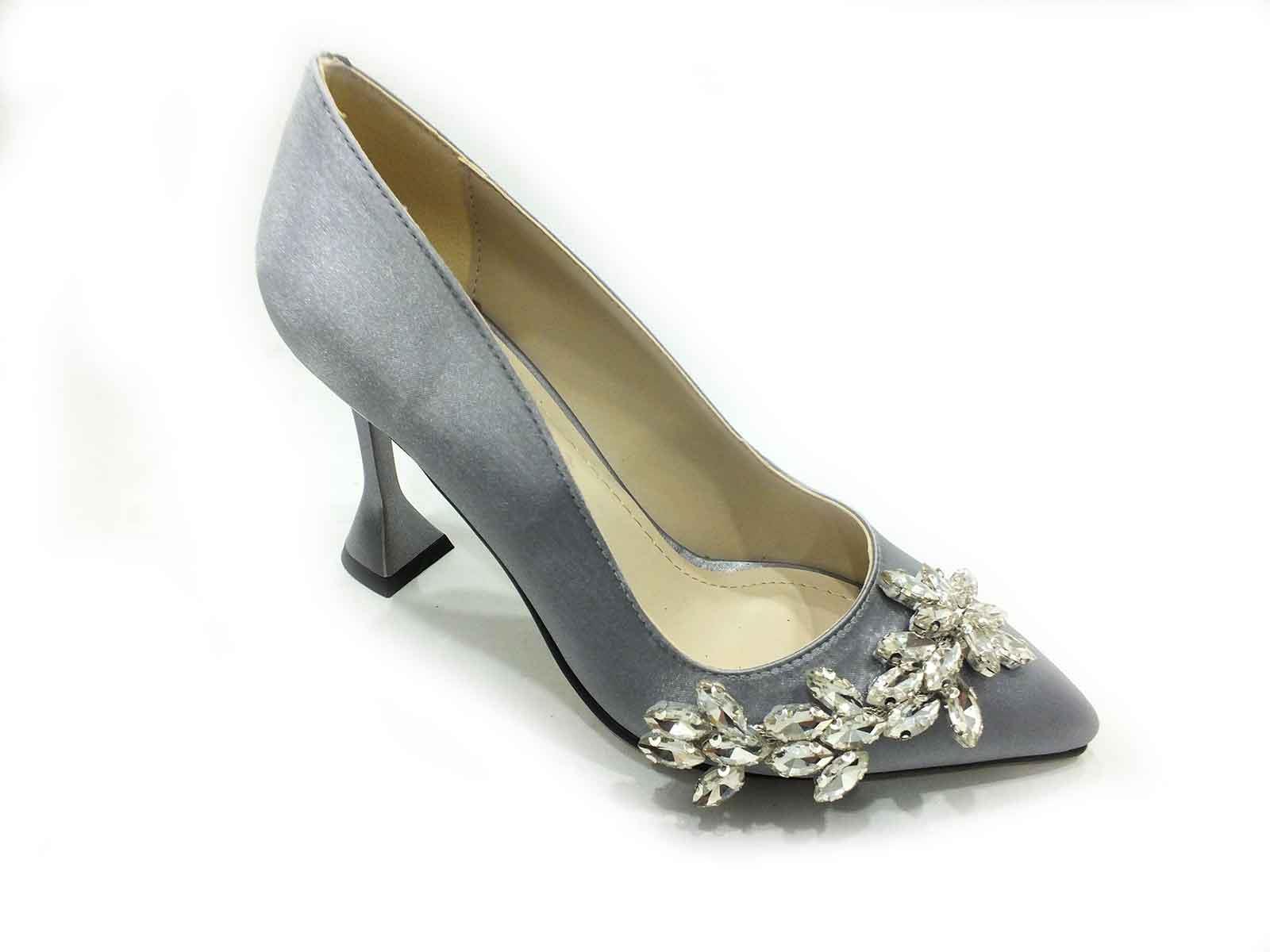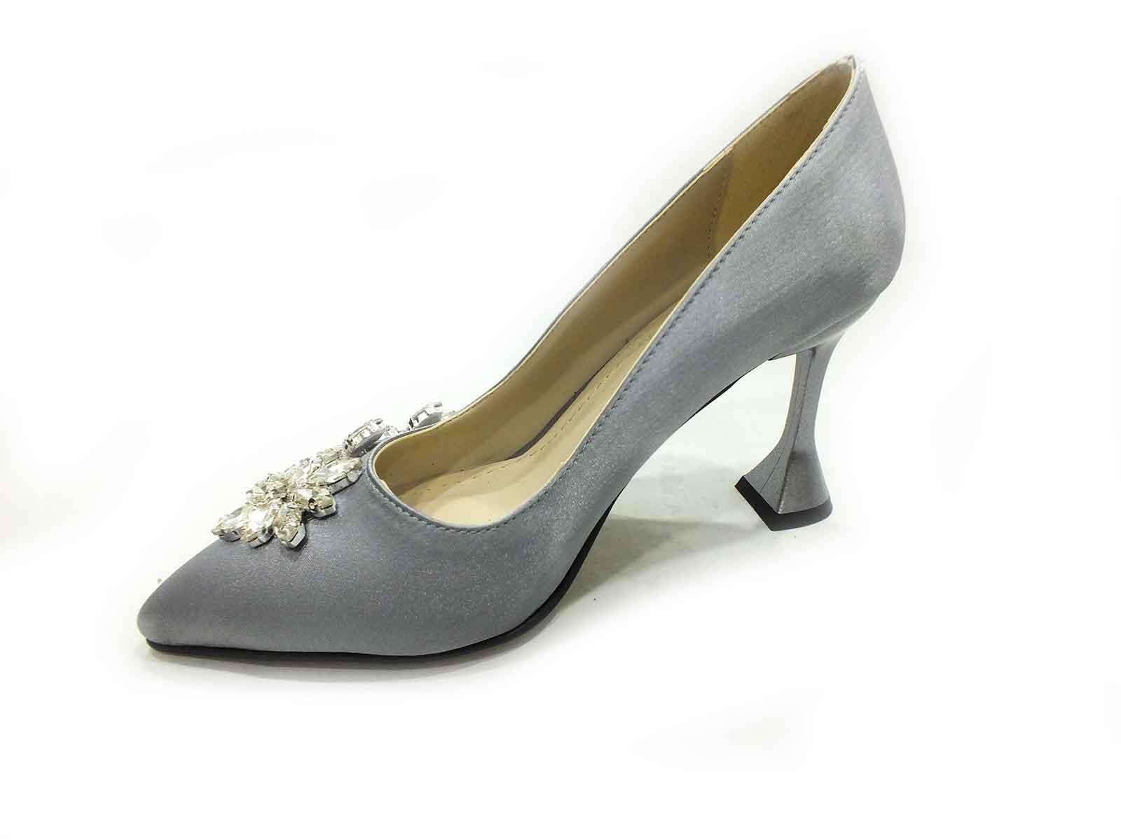 Çarıkçım Topuklu Klasik Kadın ayakkabısı Gümüş-Saten 50 705
