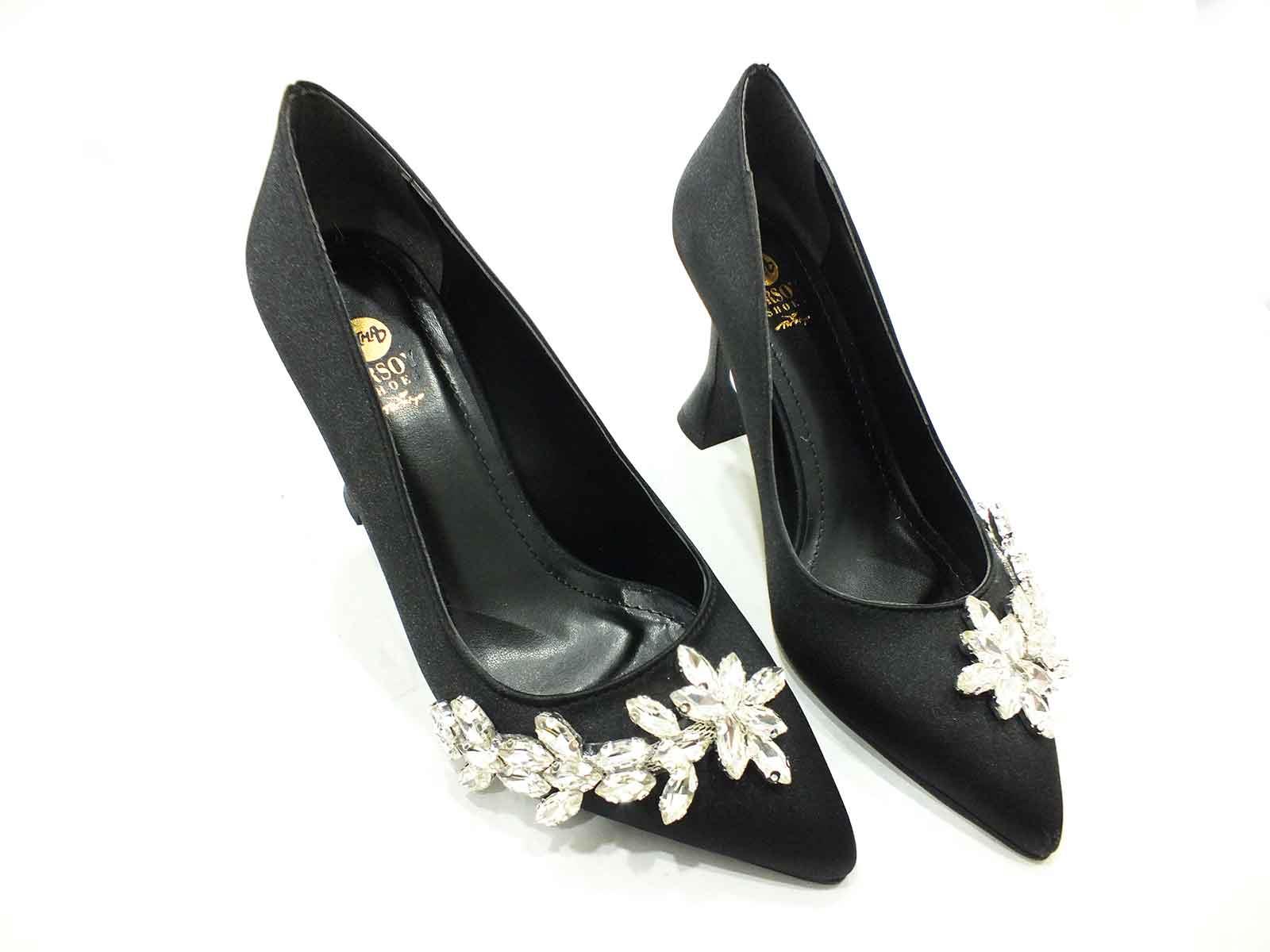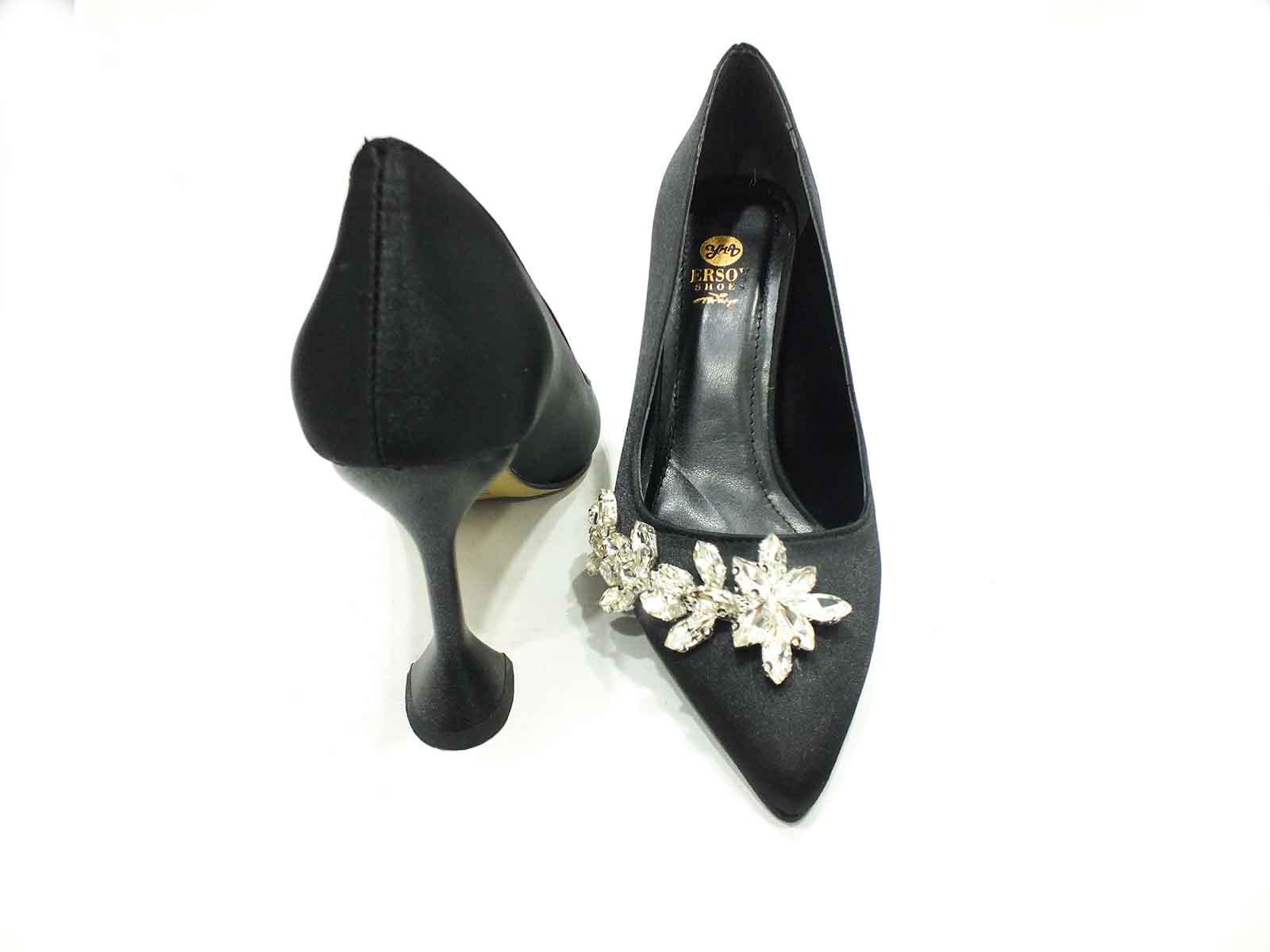 Çarıkçım Topuklu Klasik Kadın ayakkabısı Siyah-Saten 50 705