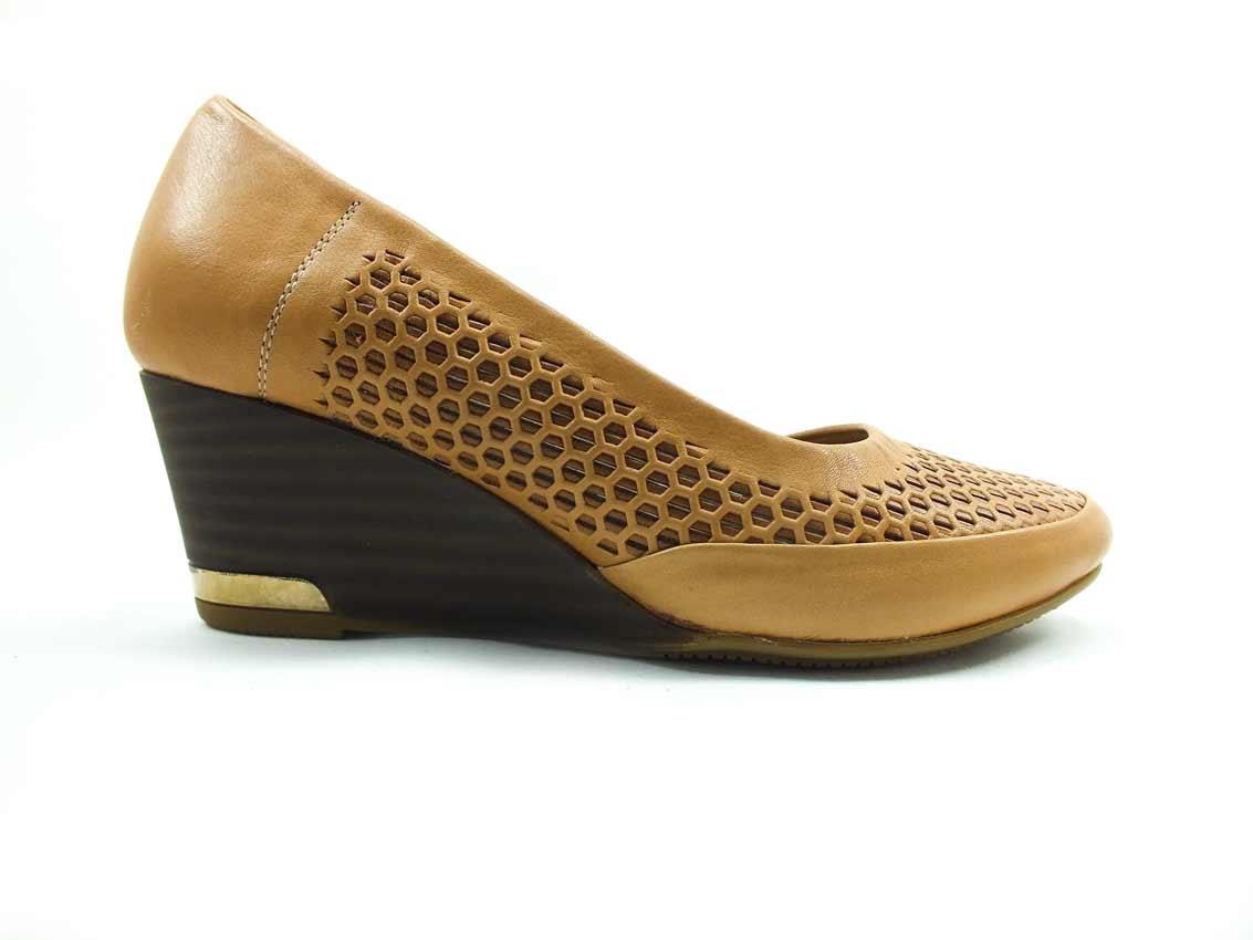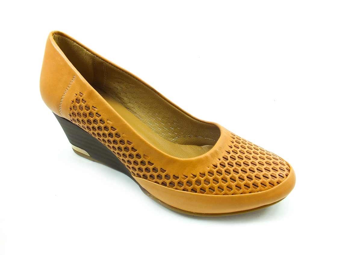 Hakiki Deri Dolgu Topuklu Bayan Ayakkabı - Taba - 10-1