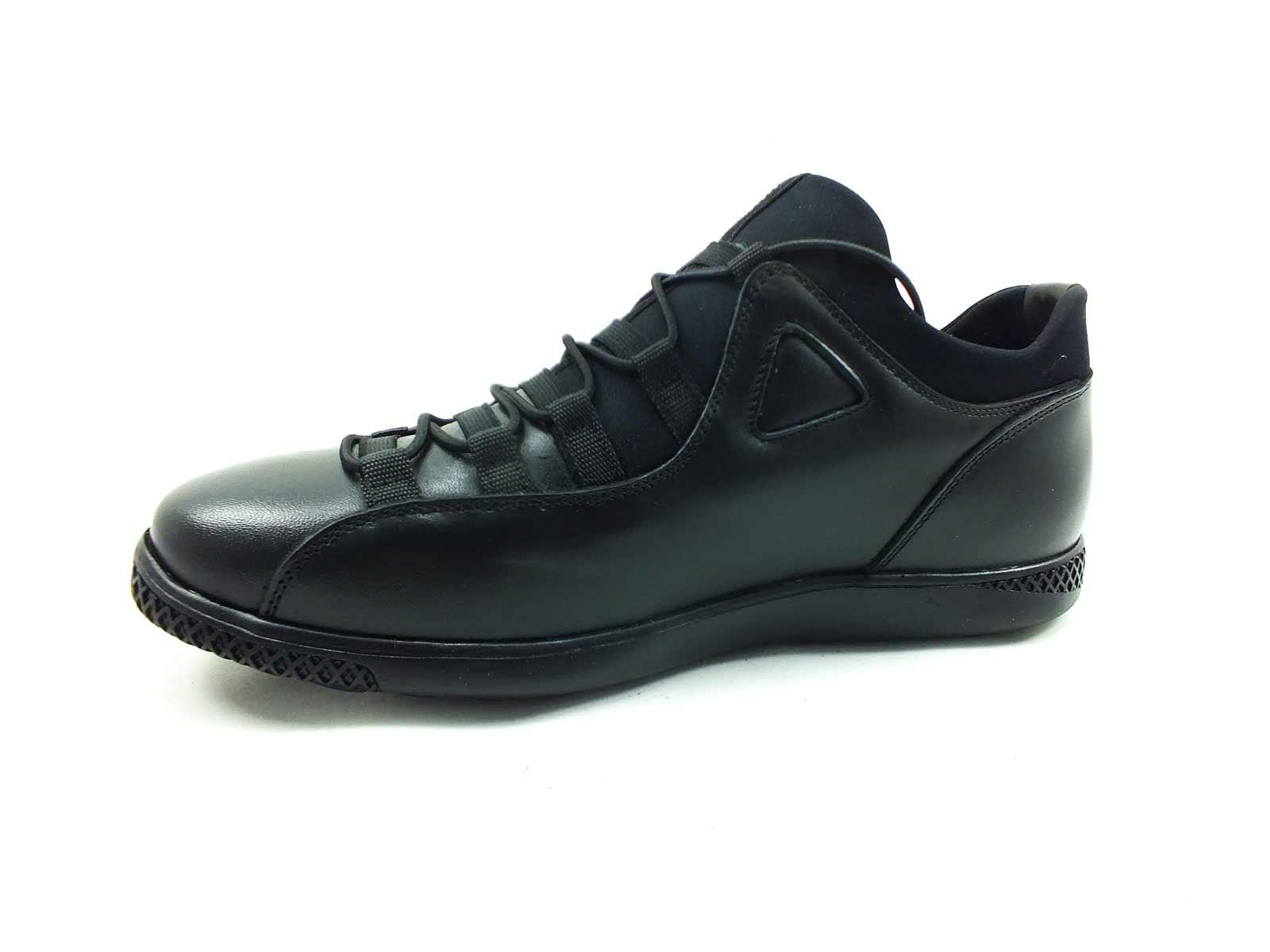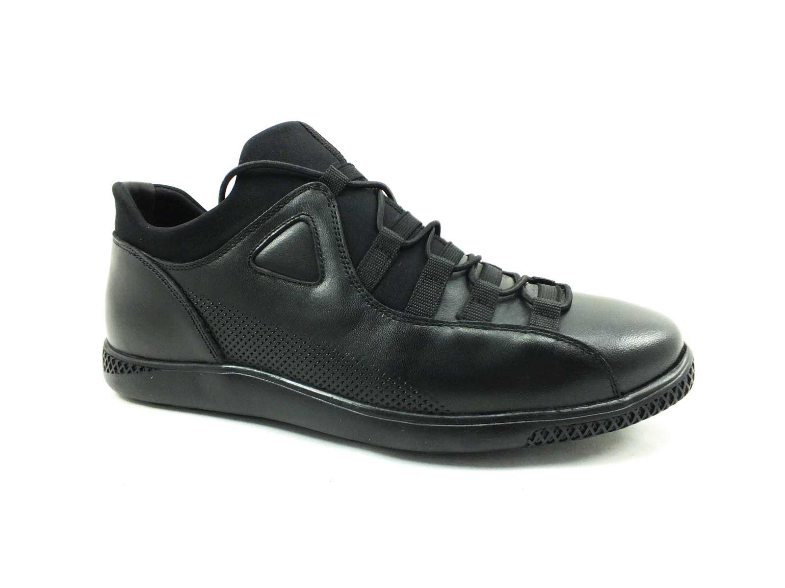 Hakiki Deri Streç Erkek Sneaker Ayakkabı - Siyah - 4459