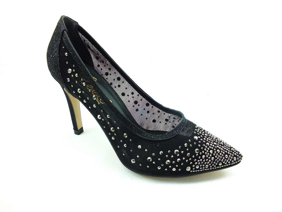 Taşlı Stiletto Ayakkabı - Siyah-Çupra - 9247