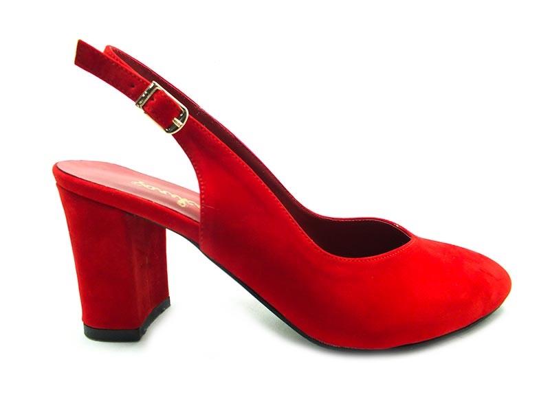 Topuklu Bayan Ayakkabı - Kırmızı-Süet - 650