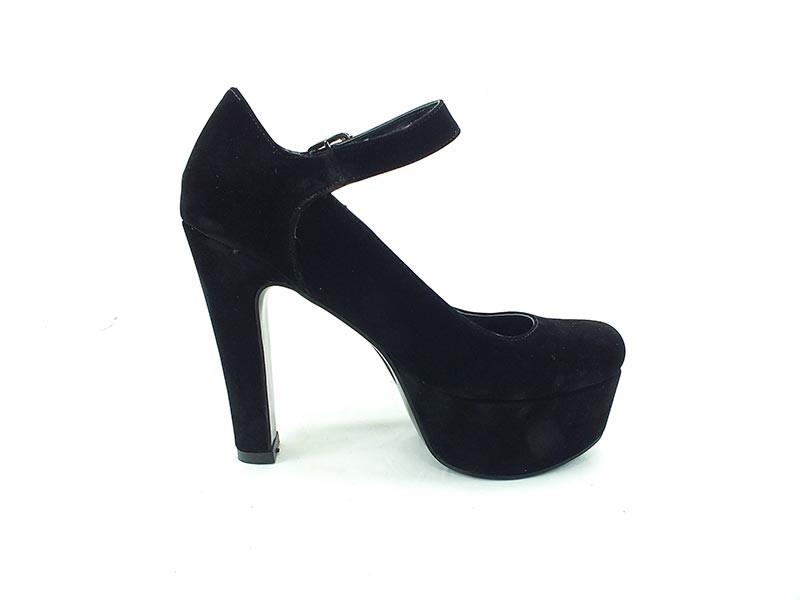 Topuklu Platform Bayan Ayakkabı - Siyah-Süet - 80