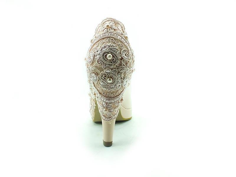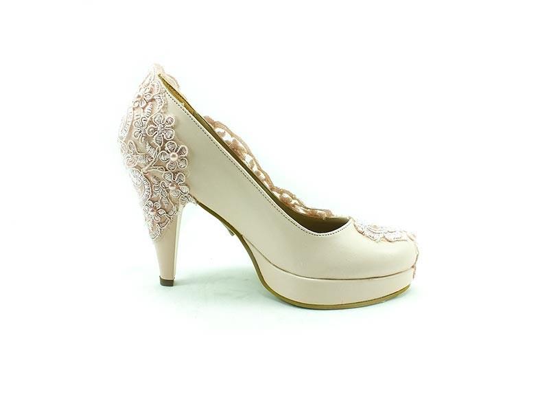 Topuklu Platform Bayan Ayakkabı - Pudra-Dantel - 1810