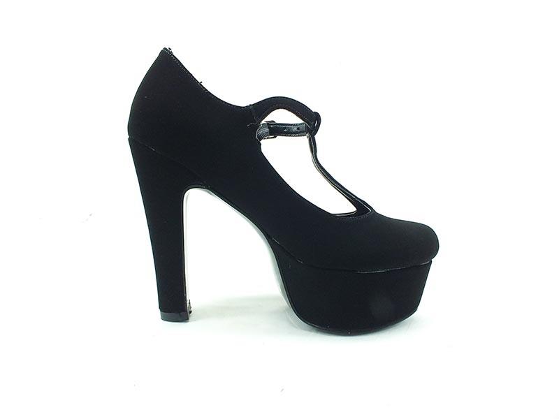 Topuklu Platform Bayan Ayakkabı - Siyah-Süet - 1920