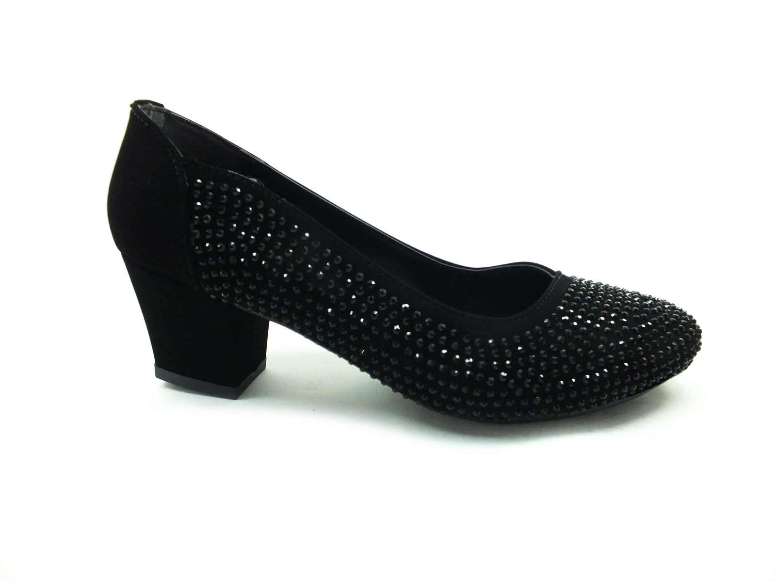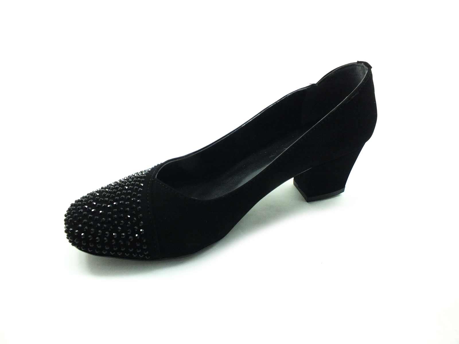 Topuklu Taşlı Bayan Ayakkabı - Siyah-Süet - 8670